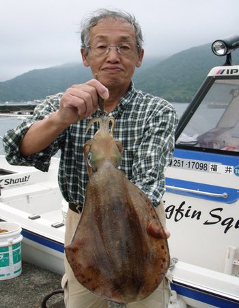 早朝エギングで、引田(父)さんアオリイカGET!