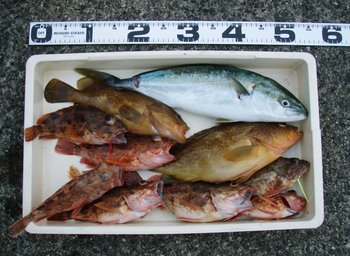 最後におみあげ根魚に、行きましたがでかいサイズが釣れないおまけに数ものびず撃沈!