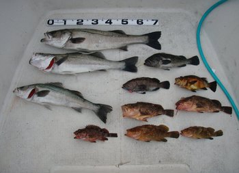 アコウ ・ 2匹 ガシラ ・ 8匹 カナガシラ ・ 2匹 カレイ マトウダイ