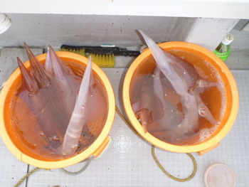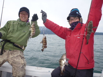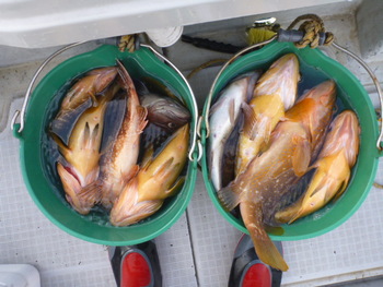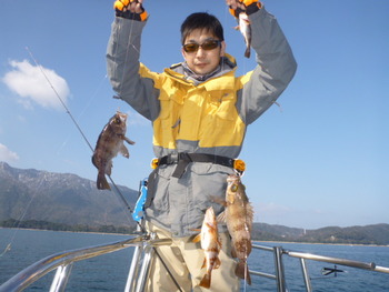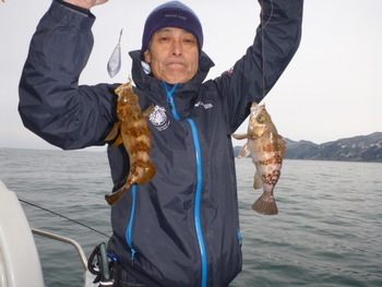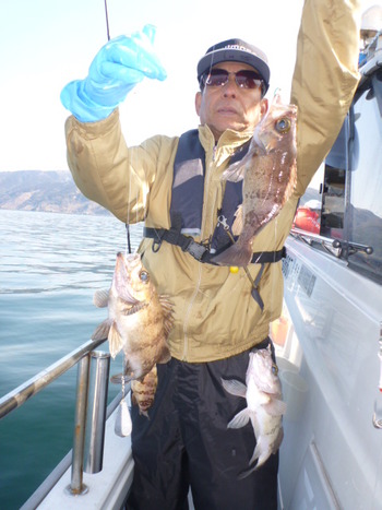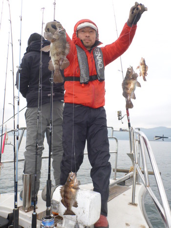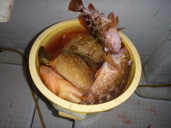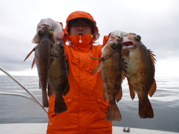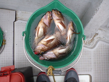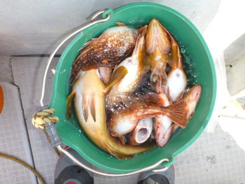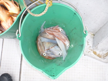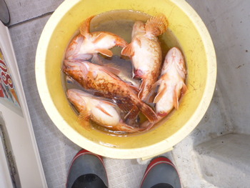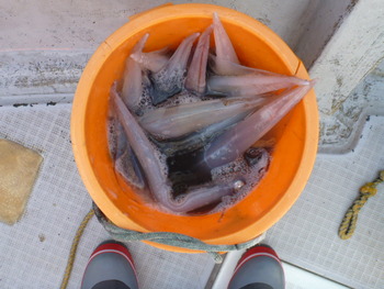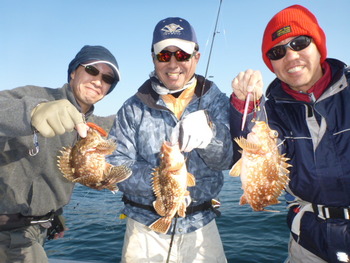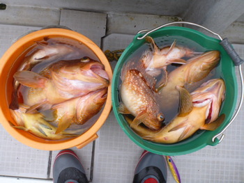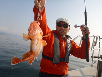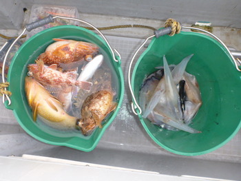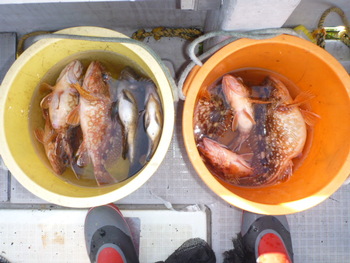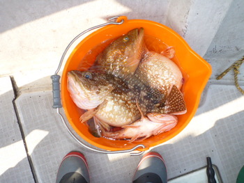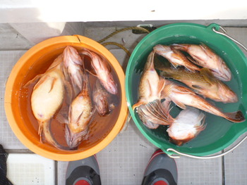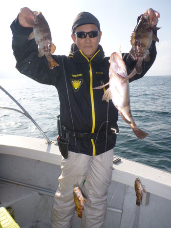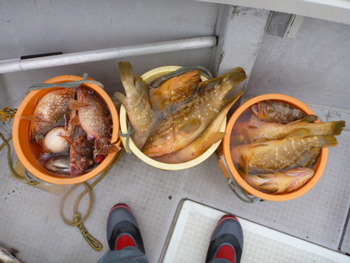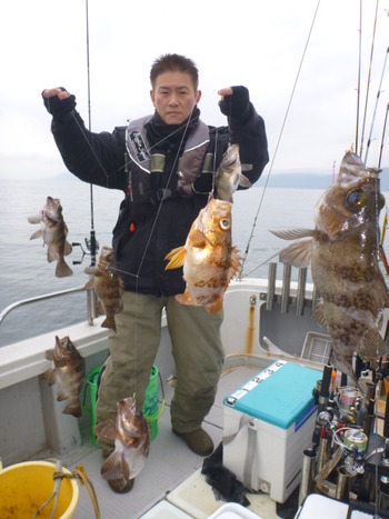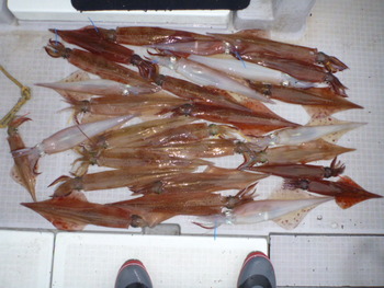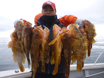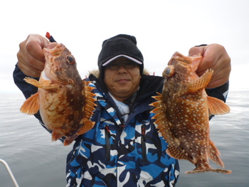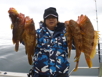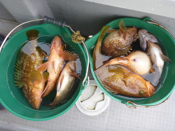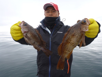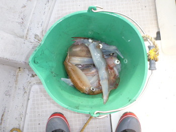 今日も ロックフィッシュ好調でしたぁ ヤリイカも 竿頭が14杯と 好調に釣れましたねぇ。 今日は 上まで上げて来ると 何匹も付いてきて サイト釣りが出来たくらい。 ヤリイカでは 初めて その状況を見ました。 いやぁ 楽しかったです。 皆さん お疲れ様でした。