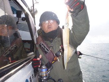 まずは ヤリイカ狙いで! 大荒れの条件の悪い中でしたが!